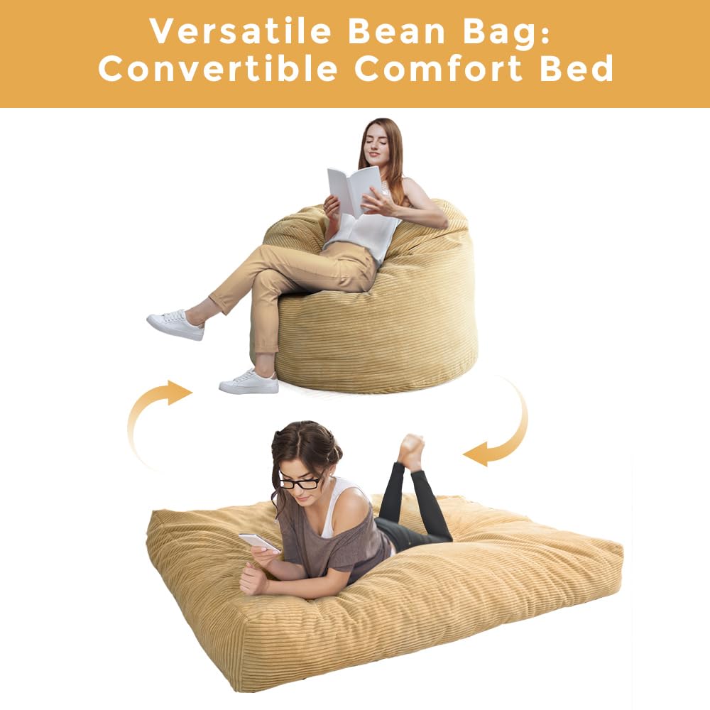 MAXYOYO Bean Bag Bed - Convertible Folds from Bed To Bean Bag Chair - Large Bean Bag with Soft Cover (Camel)