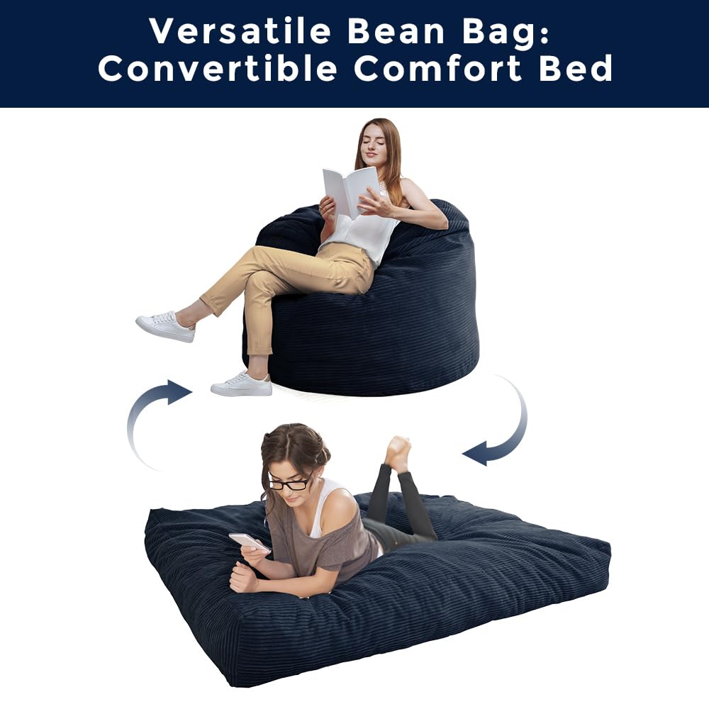 MAXYOYO Bean Bag Bed - Convertible Folds from Bed To Bean Bag Chair - Large Bean Bag with Soft Cover (Navy)