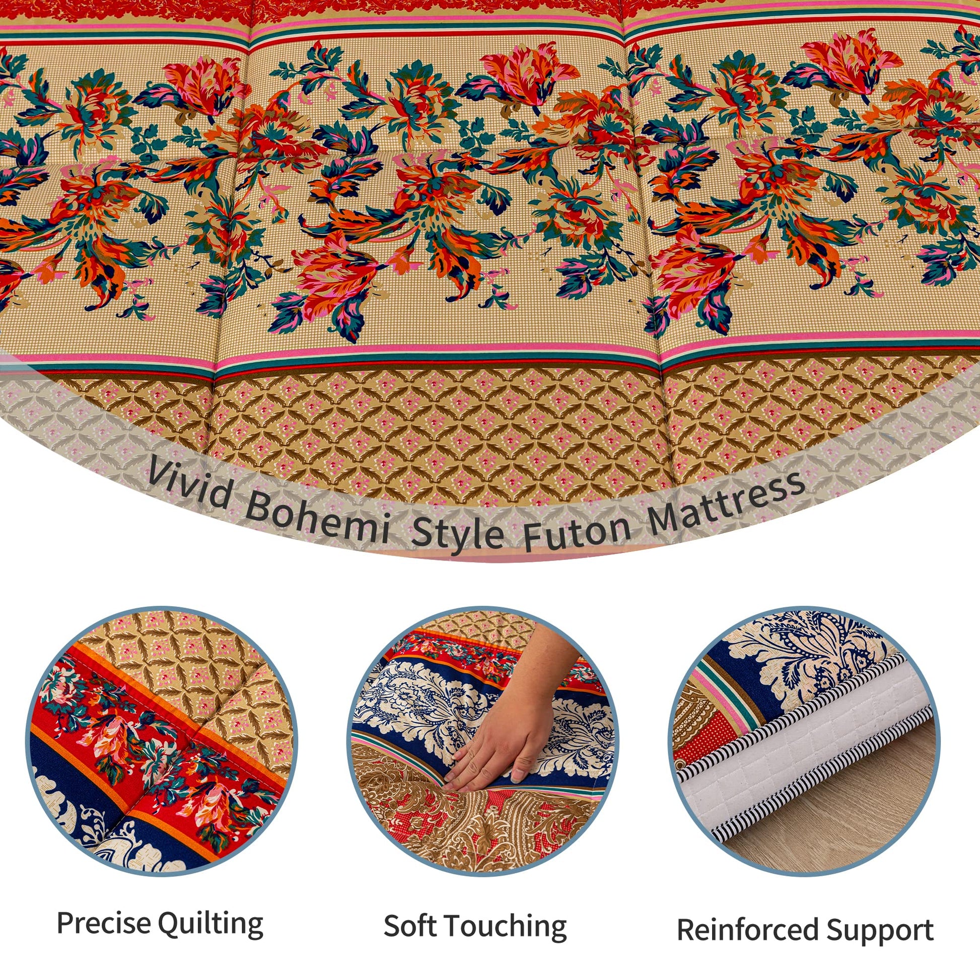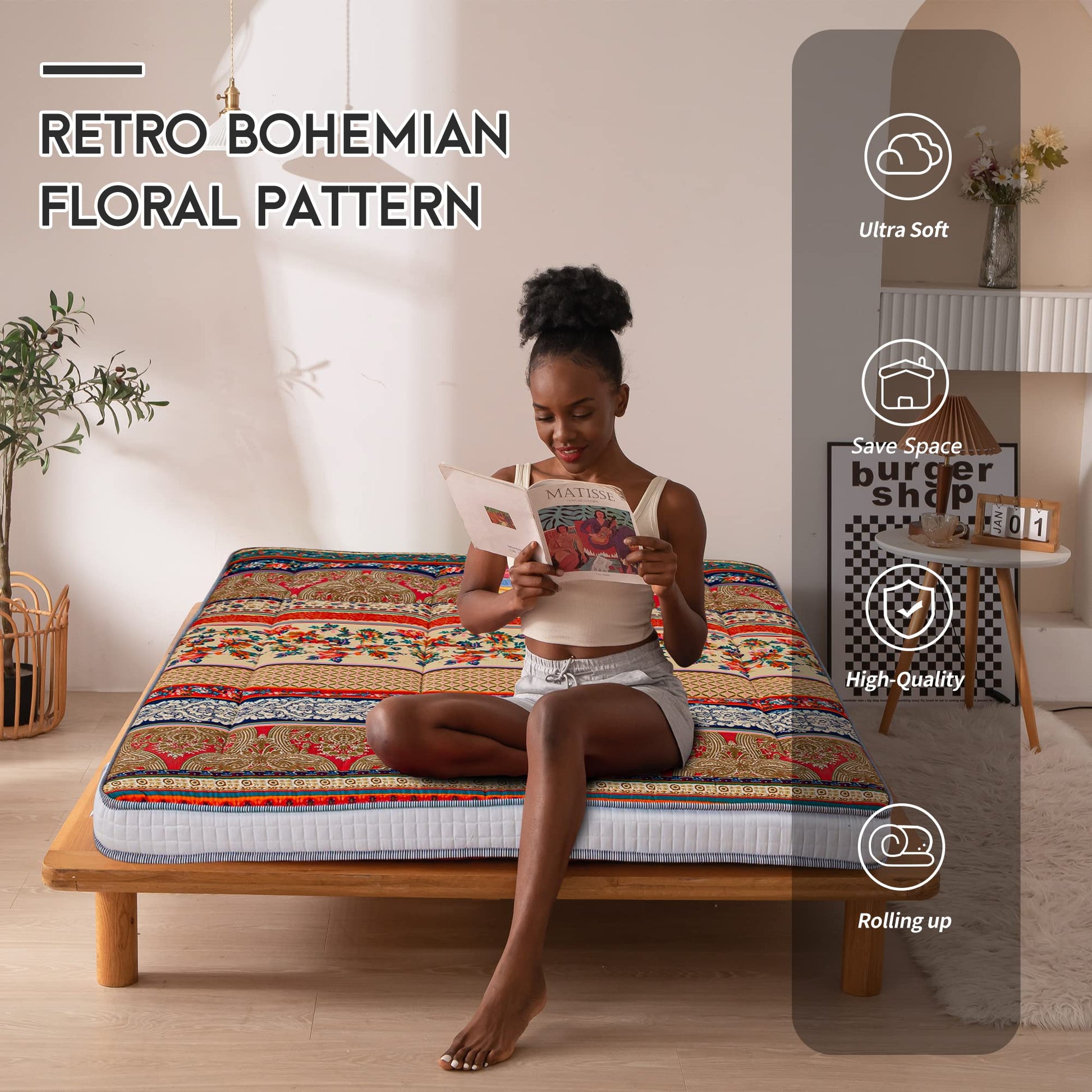 MAXYOYO Bohemian Retro Floor Mattress Vintage Floral Japanese Futon Mattress Thick Roll Up Thicken Sleeping Bed