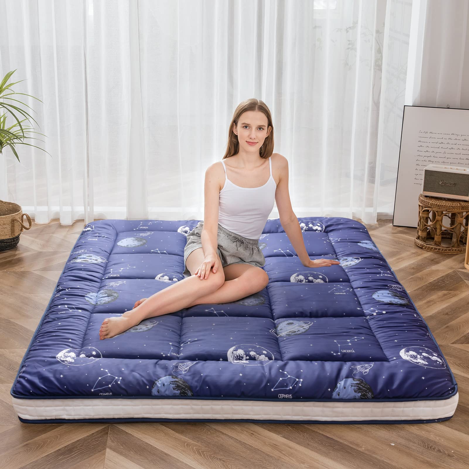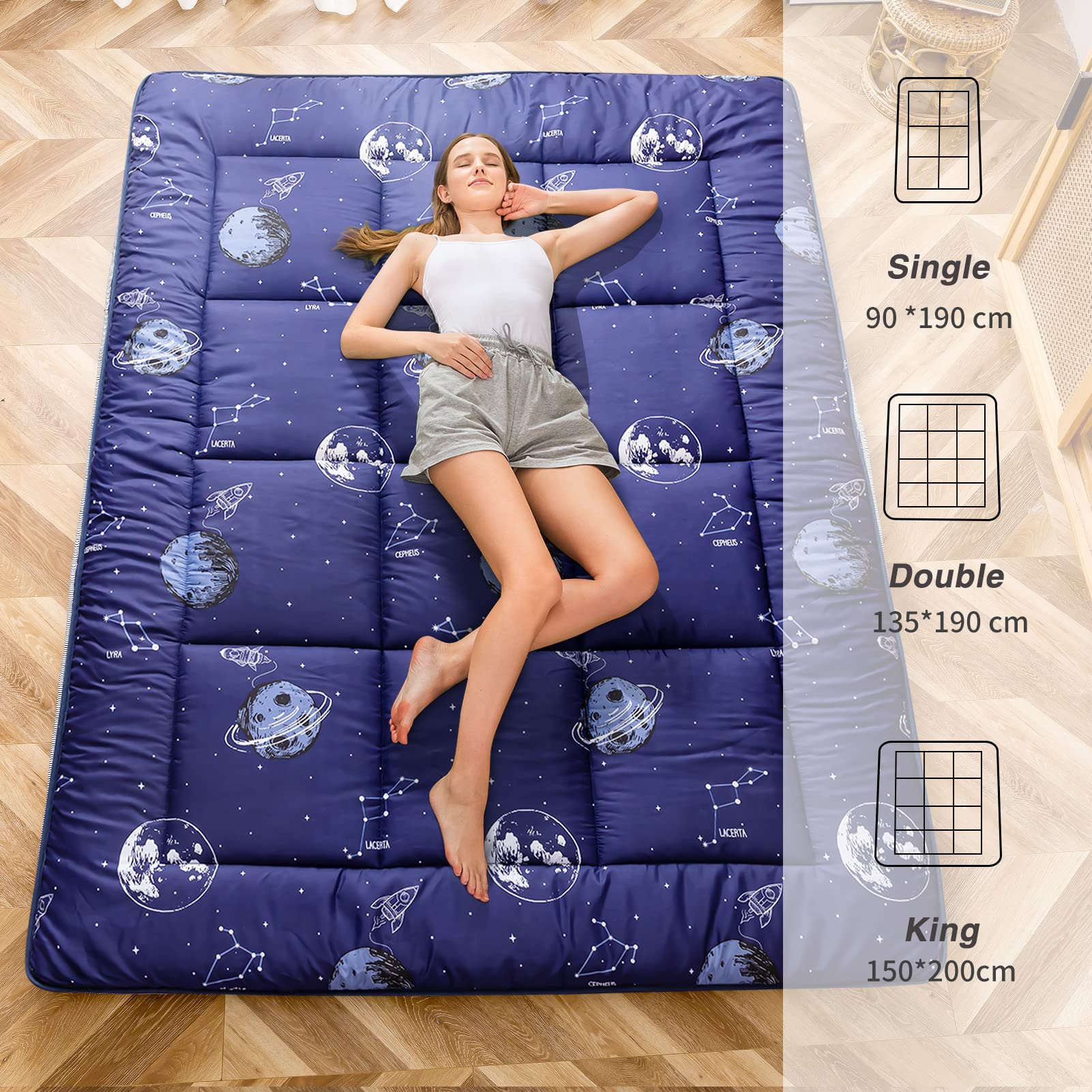 MAXYOYO Extra Thick Padded Japanese Floor Mattress, Roll Up Futon Mattress, Space Adventure Printed