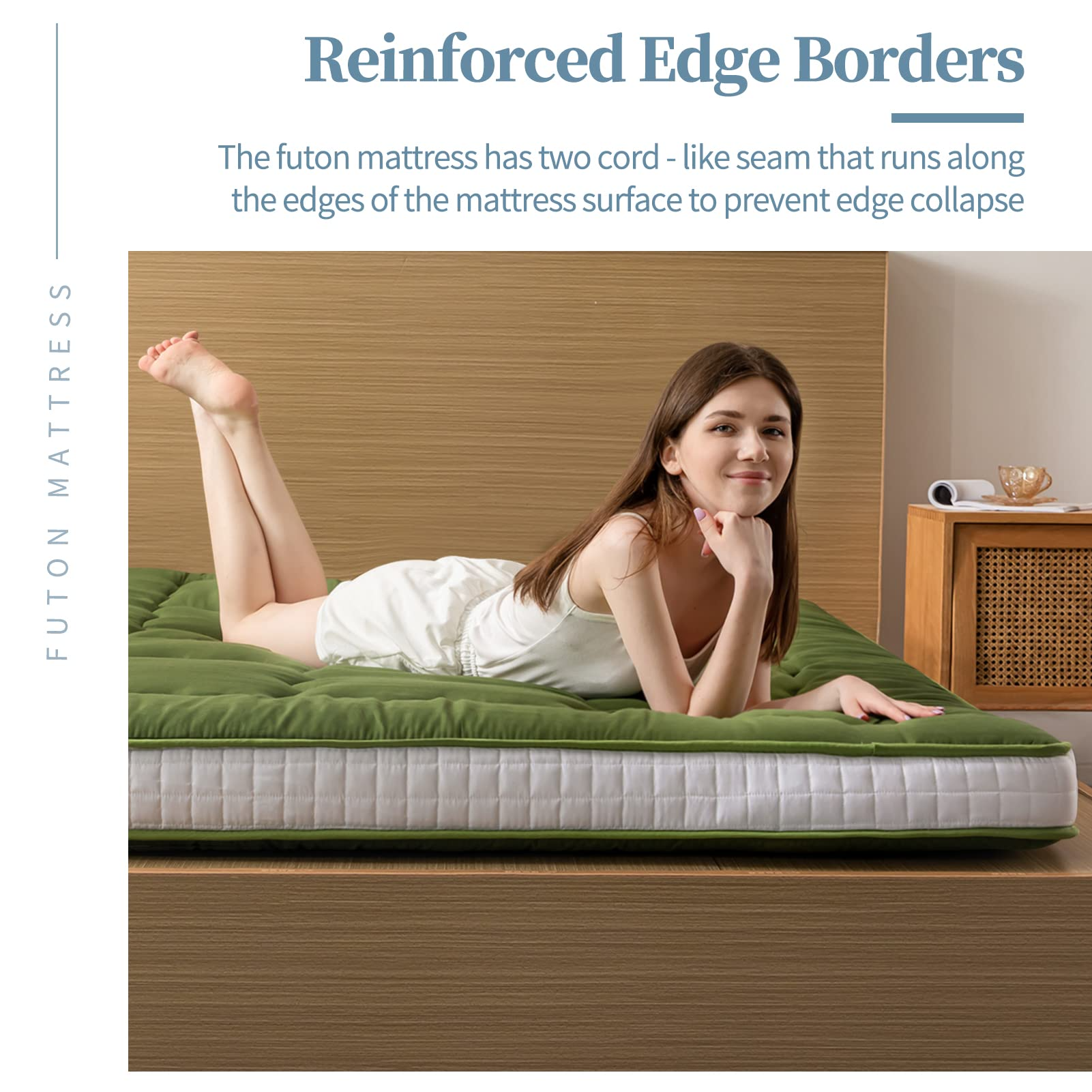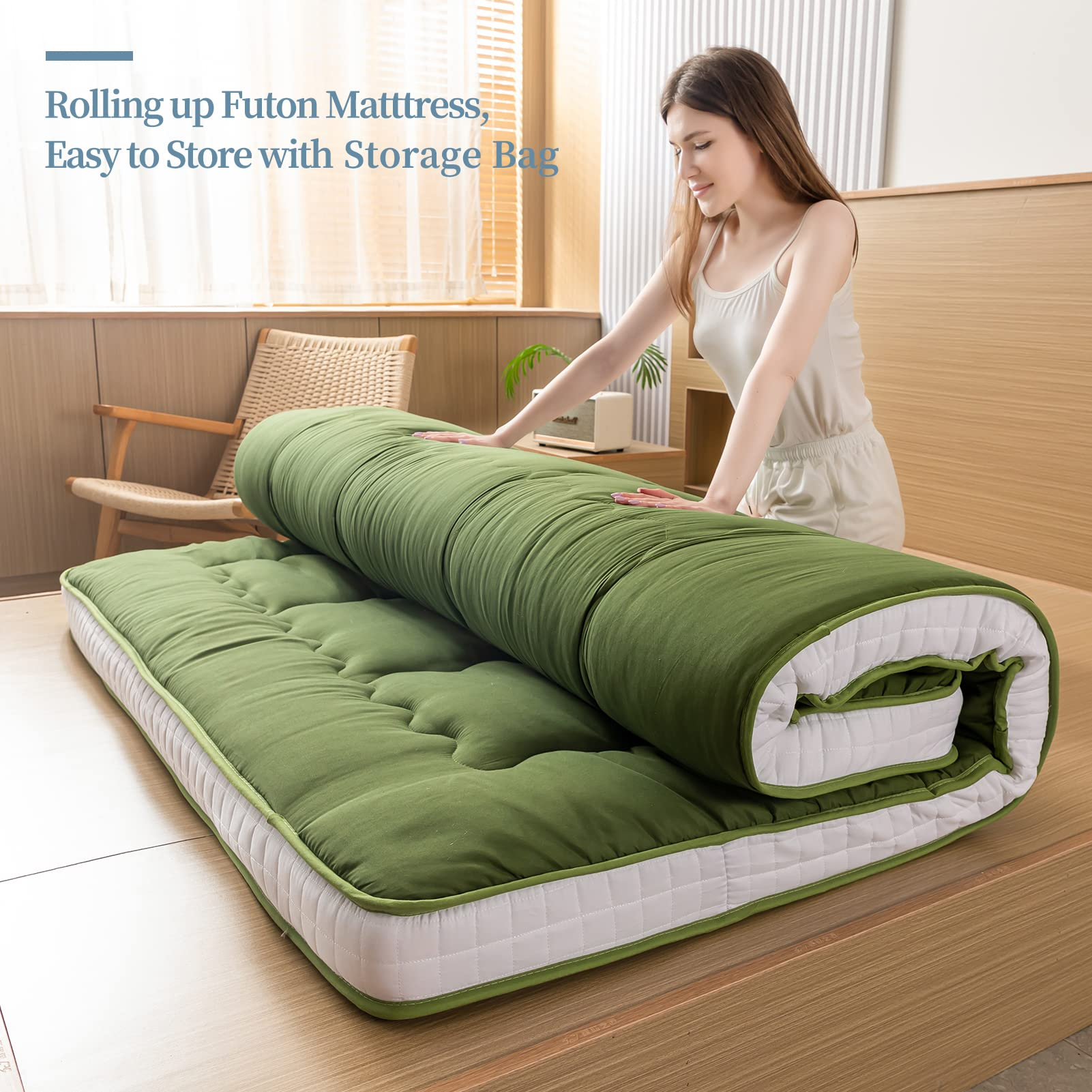 MAXYOYO Futon Mattress, Padded Japanese Floor Mattress Extra Thick Folding Sleeping Pad, Green