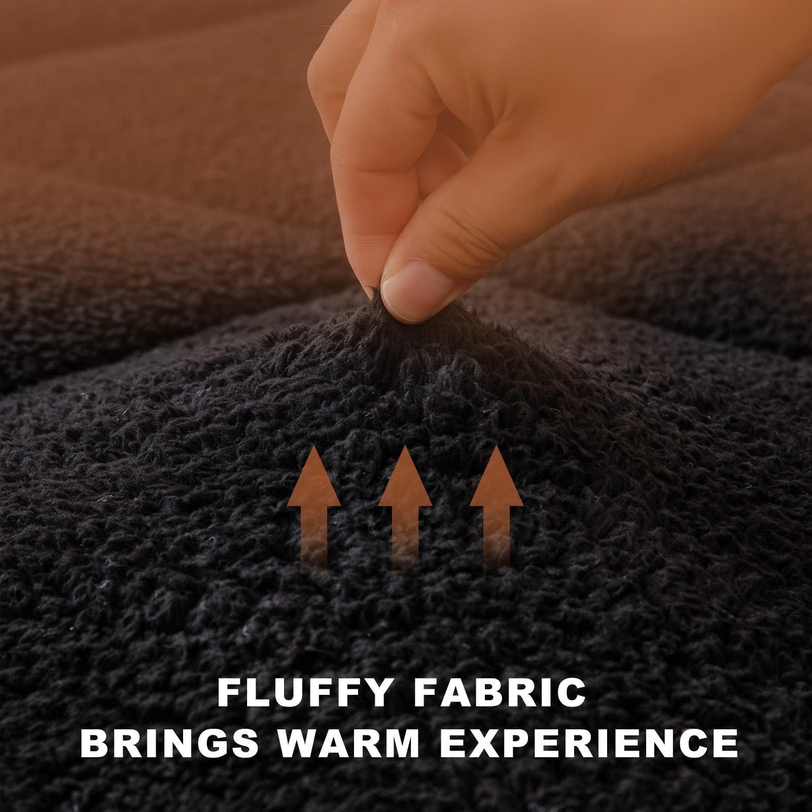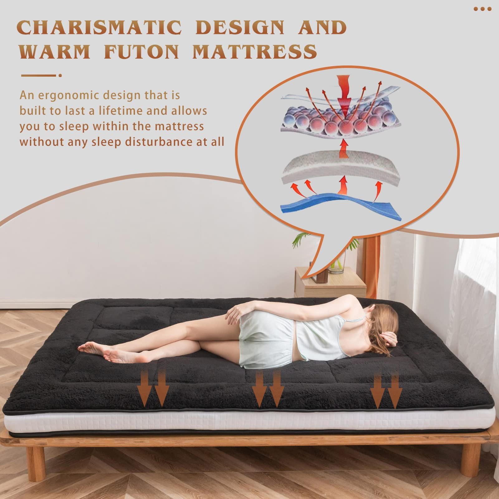 MAXYOYO Padded Sherpa Fleece Futon Mattress, Single Size Japanese Style Floor Mattress Roll Up Mattress, Black