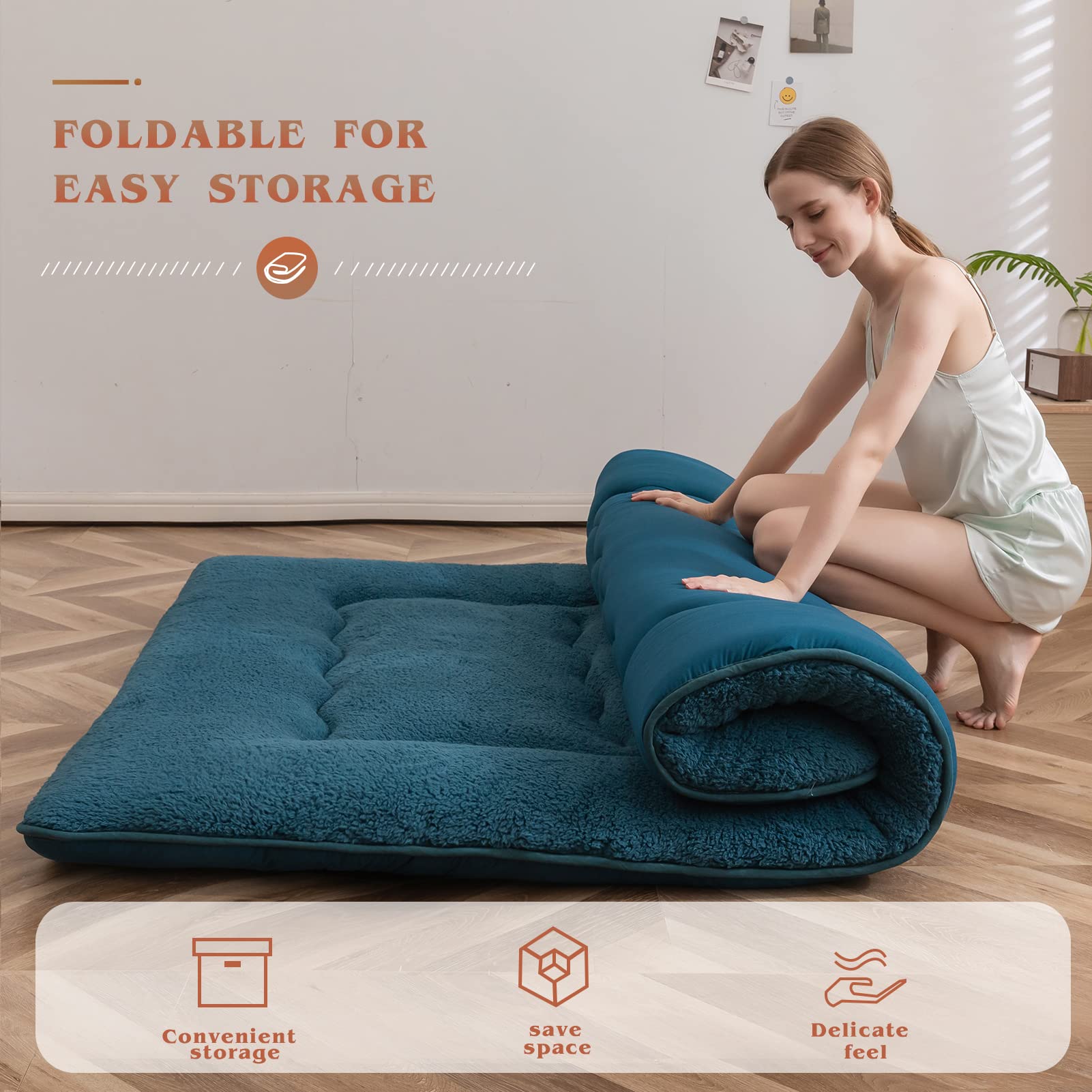 MAXYOYO Sherpa Fleece Floor Mattress Futon Mattress,Bluestone Japanese Style Roll Up Mattress