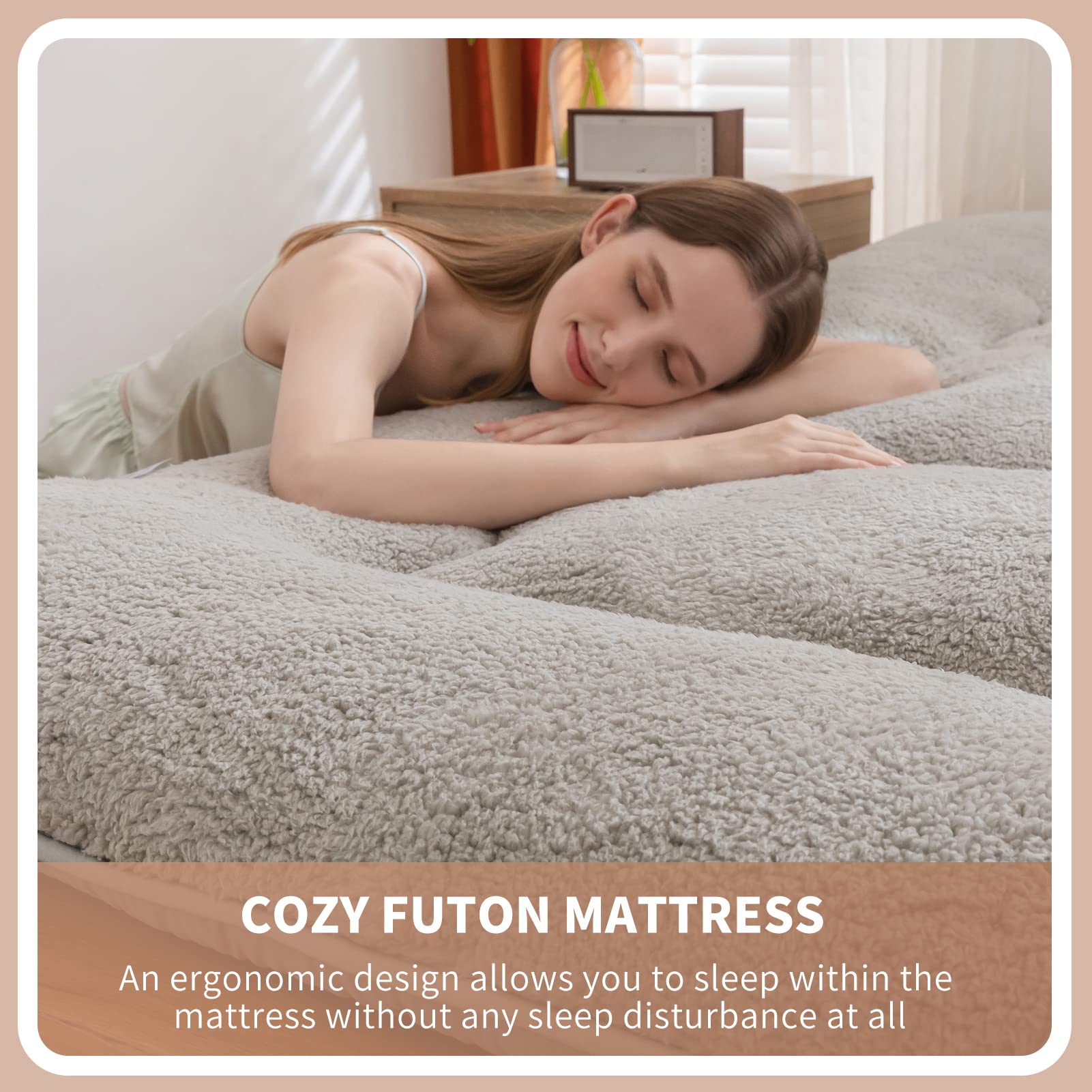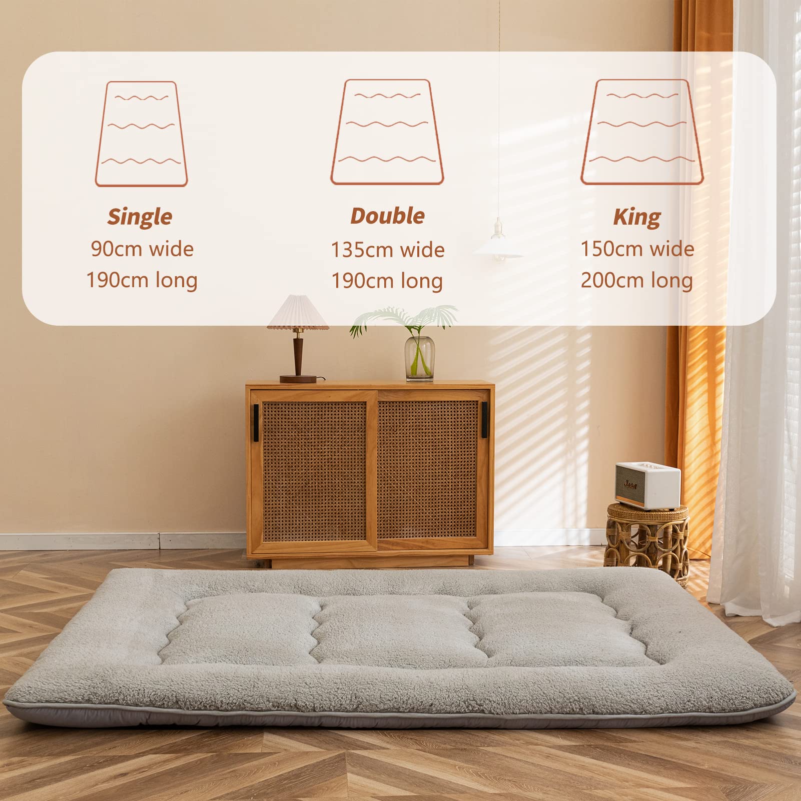 MAXYOYO Sherpa Fleece Floor Mattress Futon Mattress,Grey Japanese Style Roll Up Mattress
